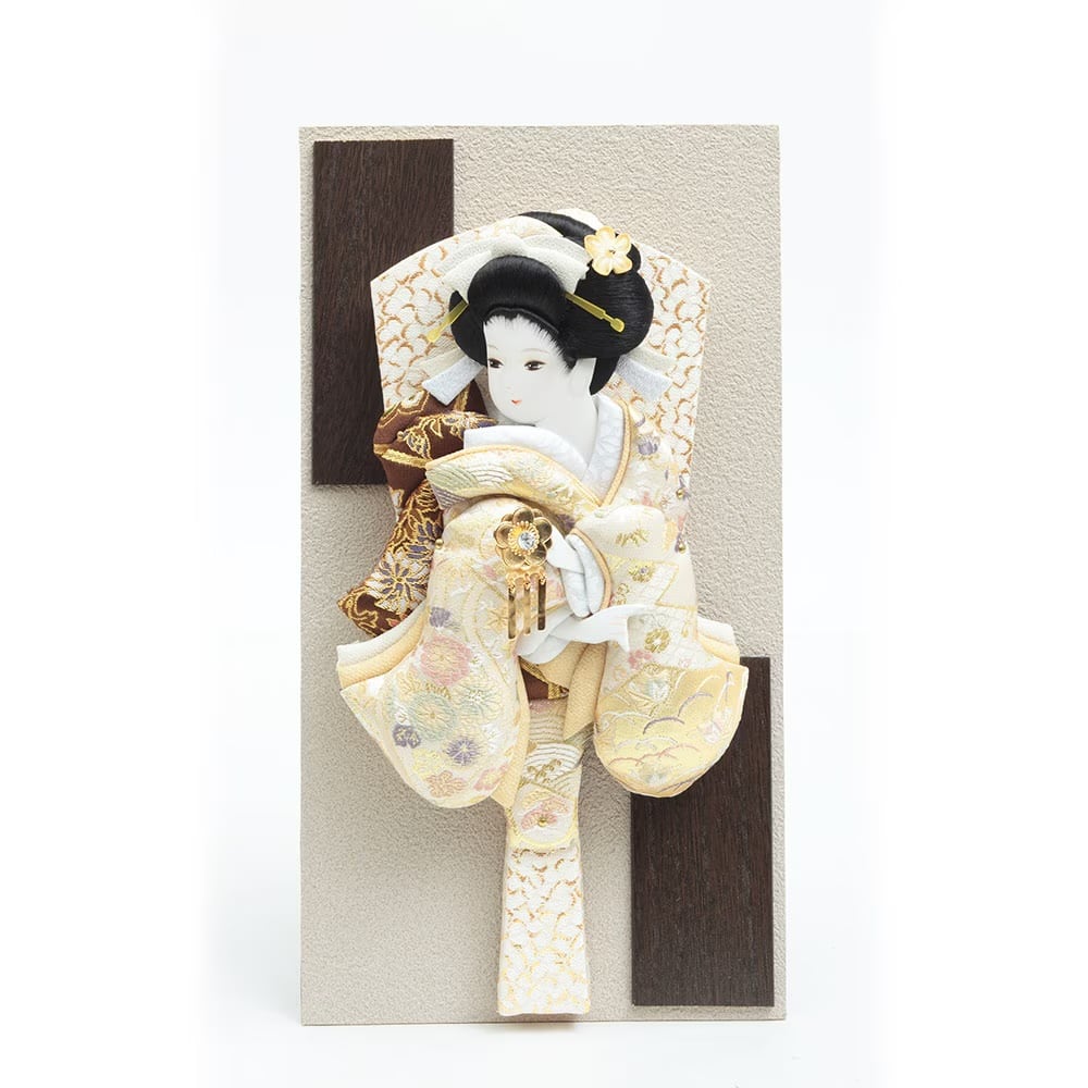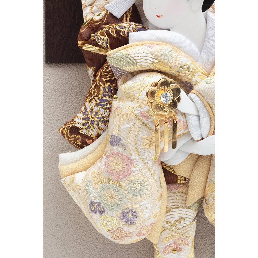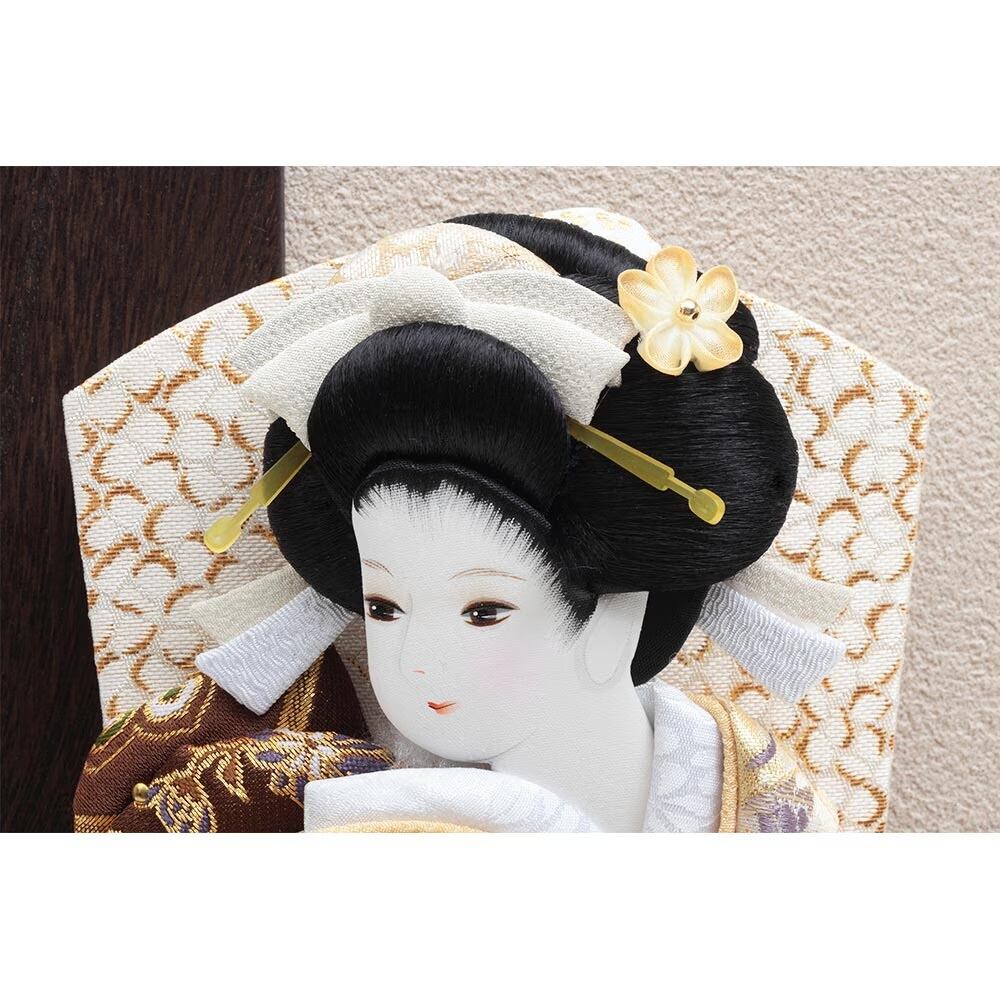 愛らしさもありながら優美に微笑むお顔と上品な雰囲気に魅了されるお祝いにふさわしい羽子板飾りです。