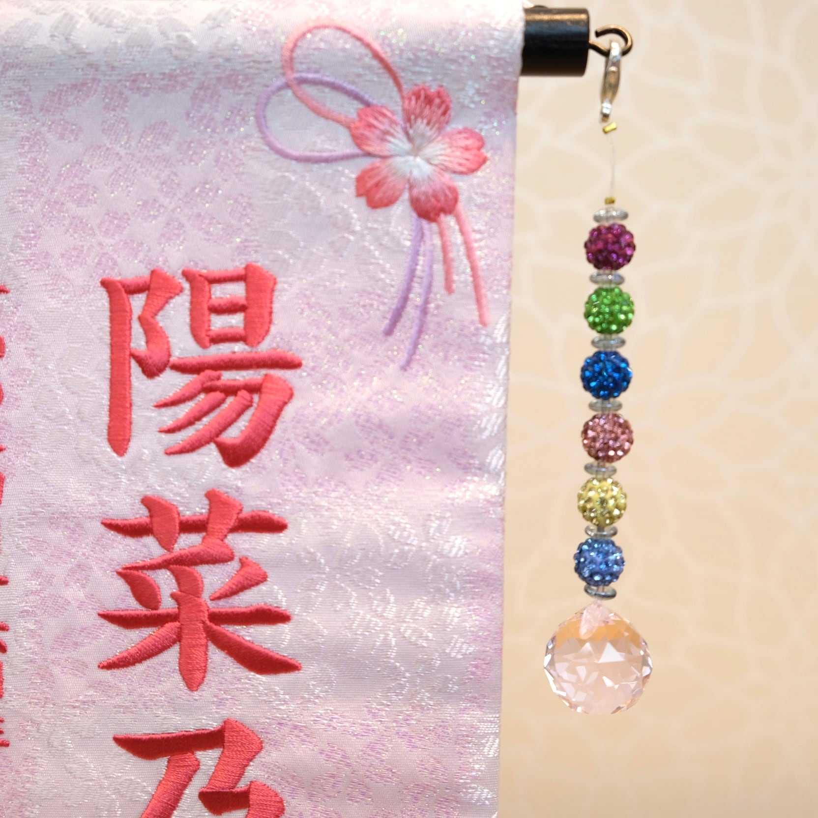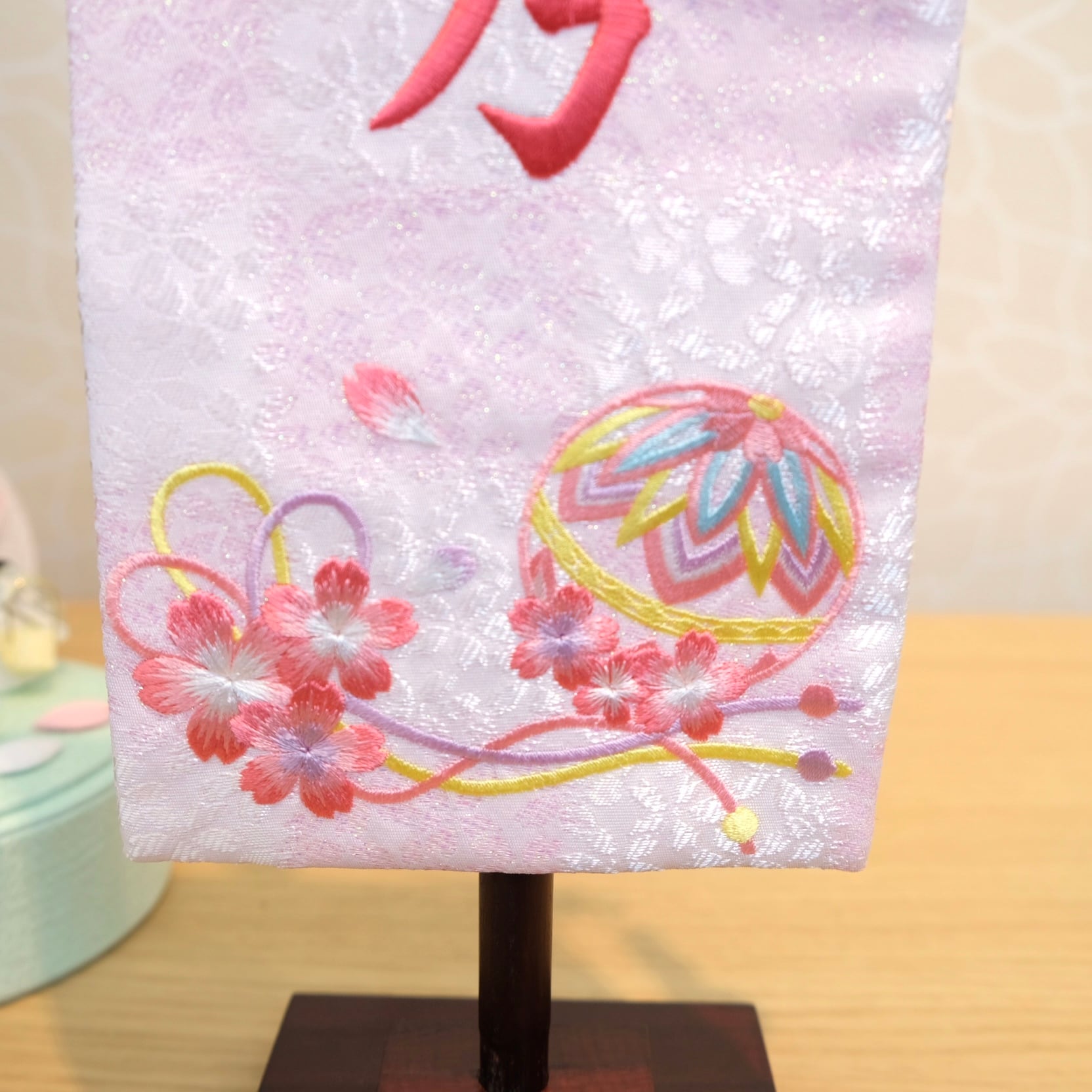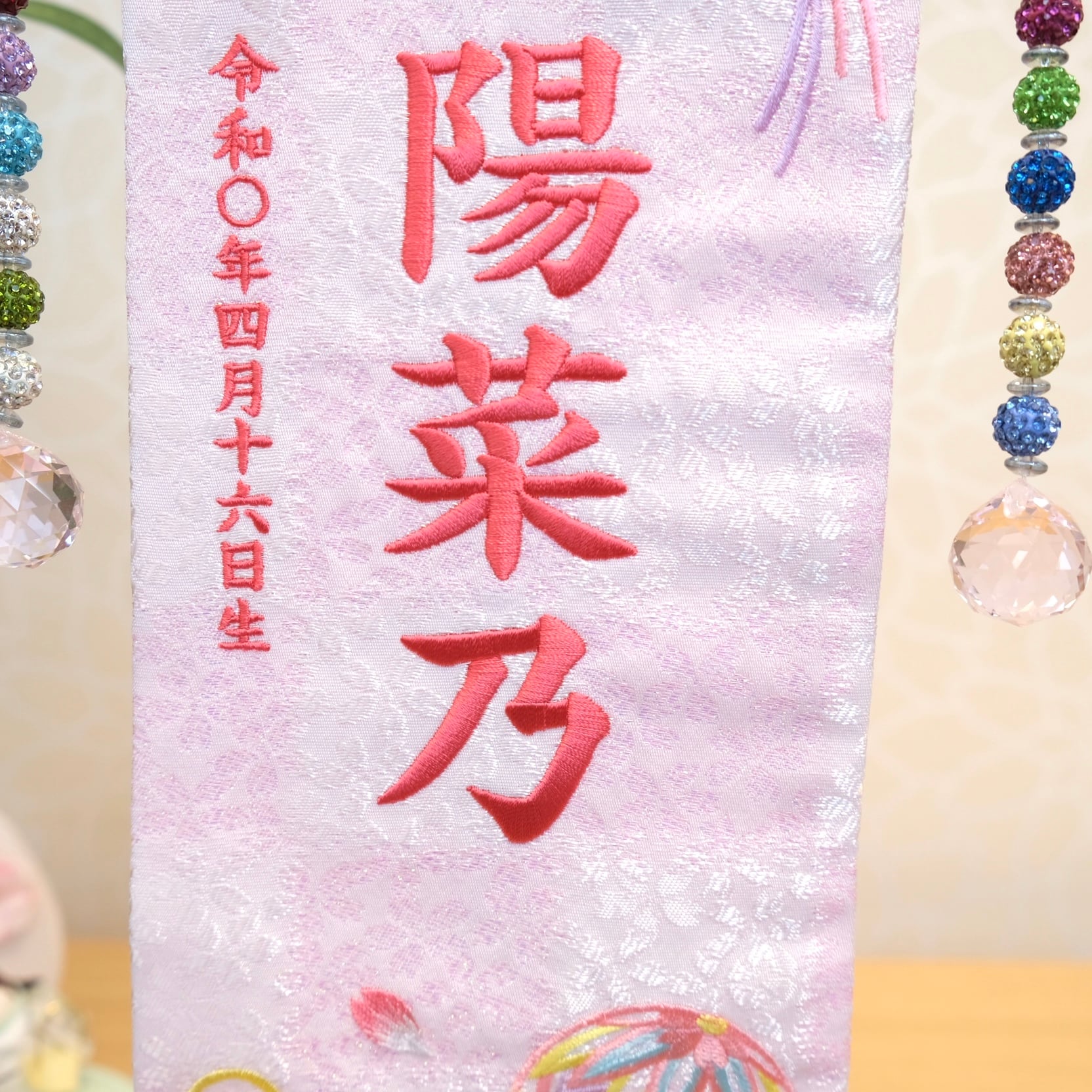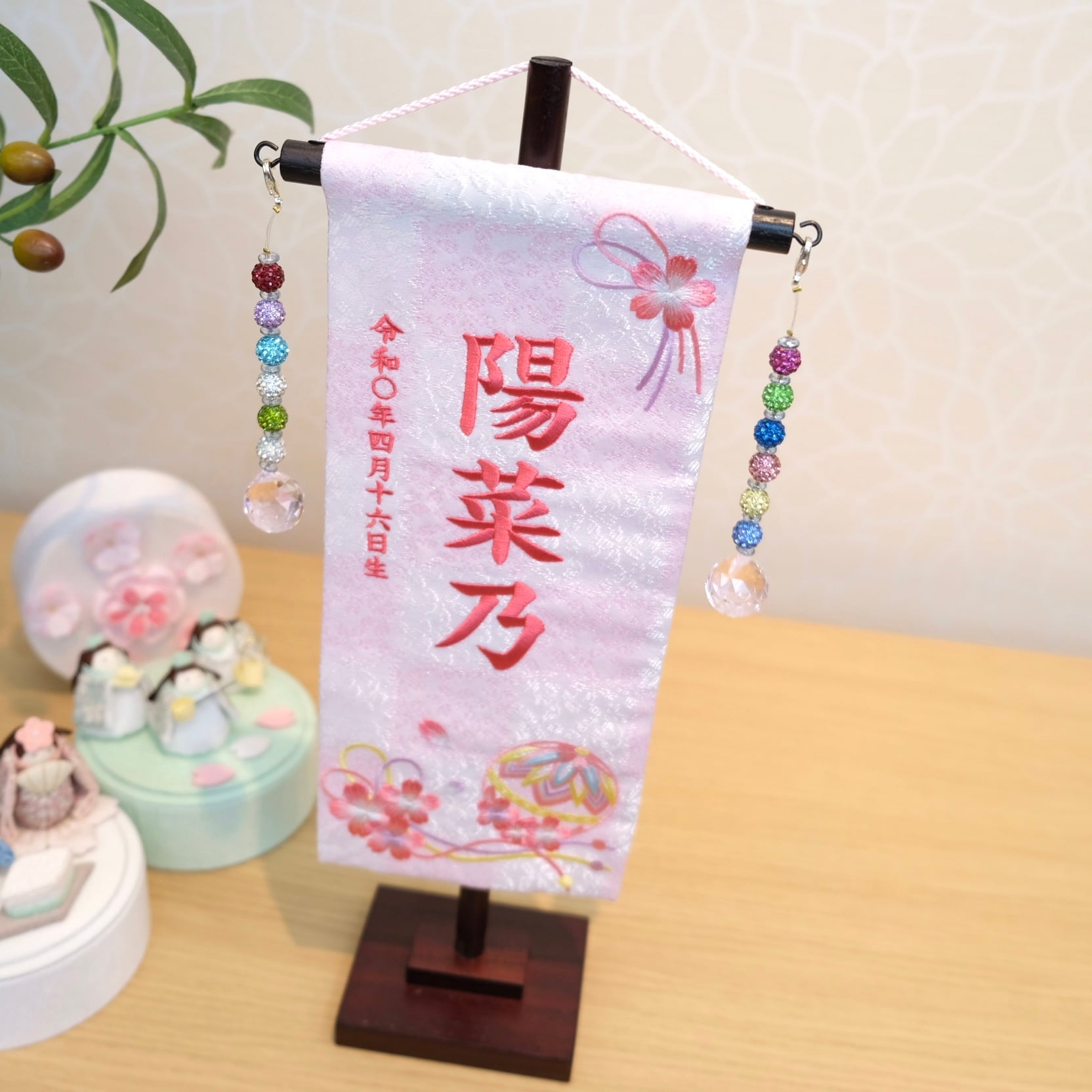 名前旗 | 徳織 桜まり紐(白桃)虹陽玉 小 高さ38cm | 雛人形 桃の節句 女の子 かわいい おしゃれ 出産祝い | <No.TU07-200690>