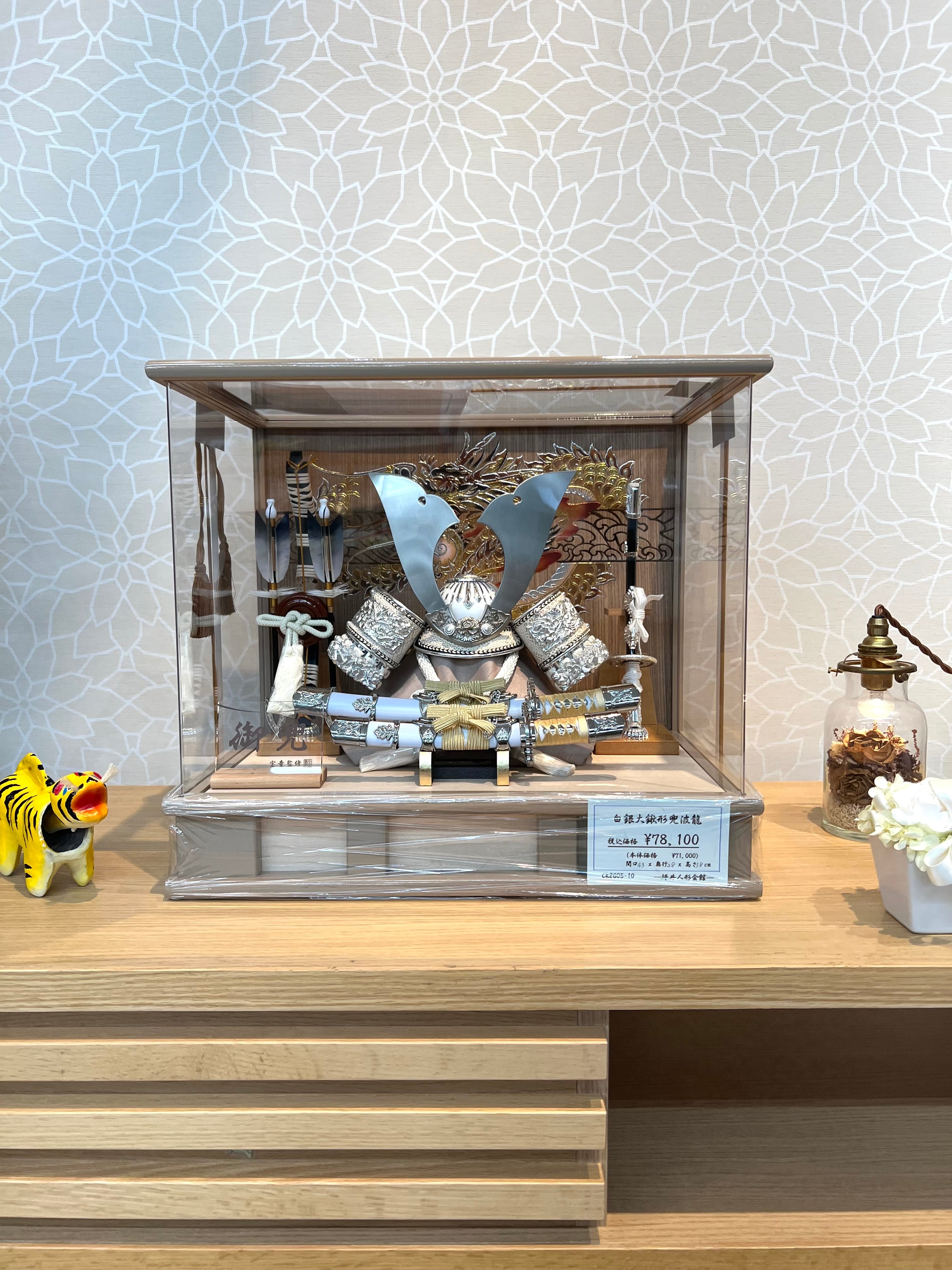 宝童作 白銀鍬形アクリルケース 五月人形/ケース飾り/兜/端午の節句/コンパクト/インテリア/ck2605