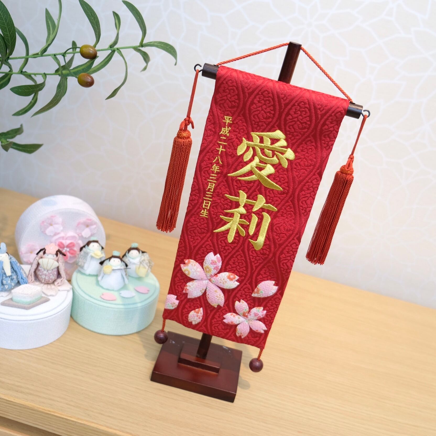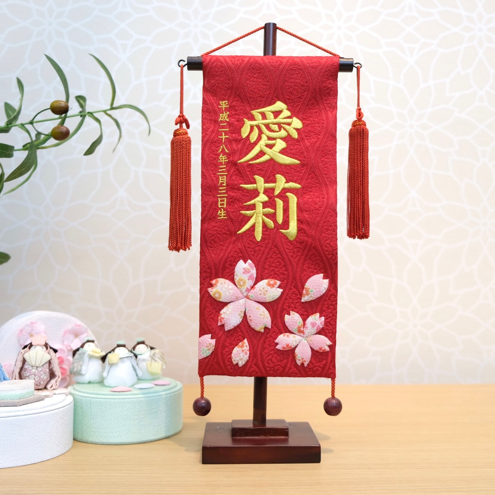 名前旗 | 名物裂 押絵桜(赤) 高さ38cm | 雛人形 桃の節句 女の子 かわいい おしゃれ 出産祝い | No.TU07-165197