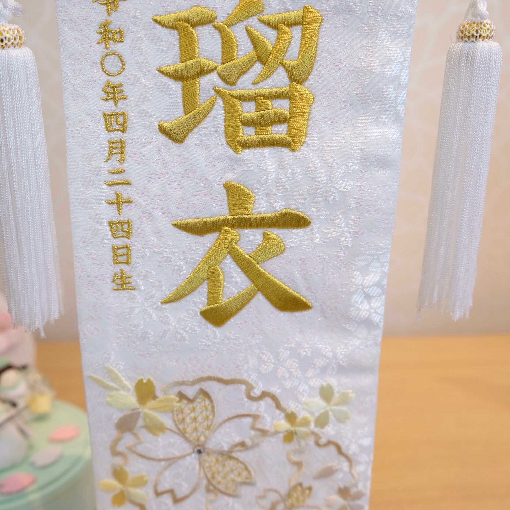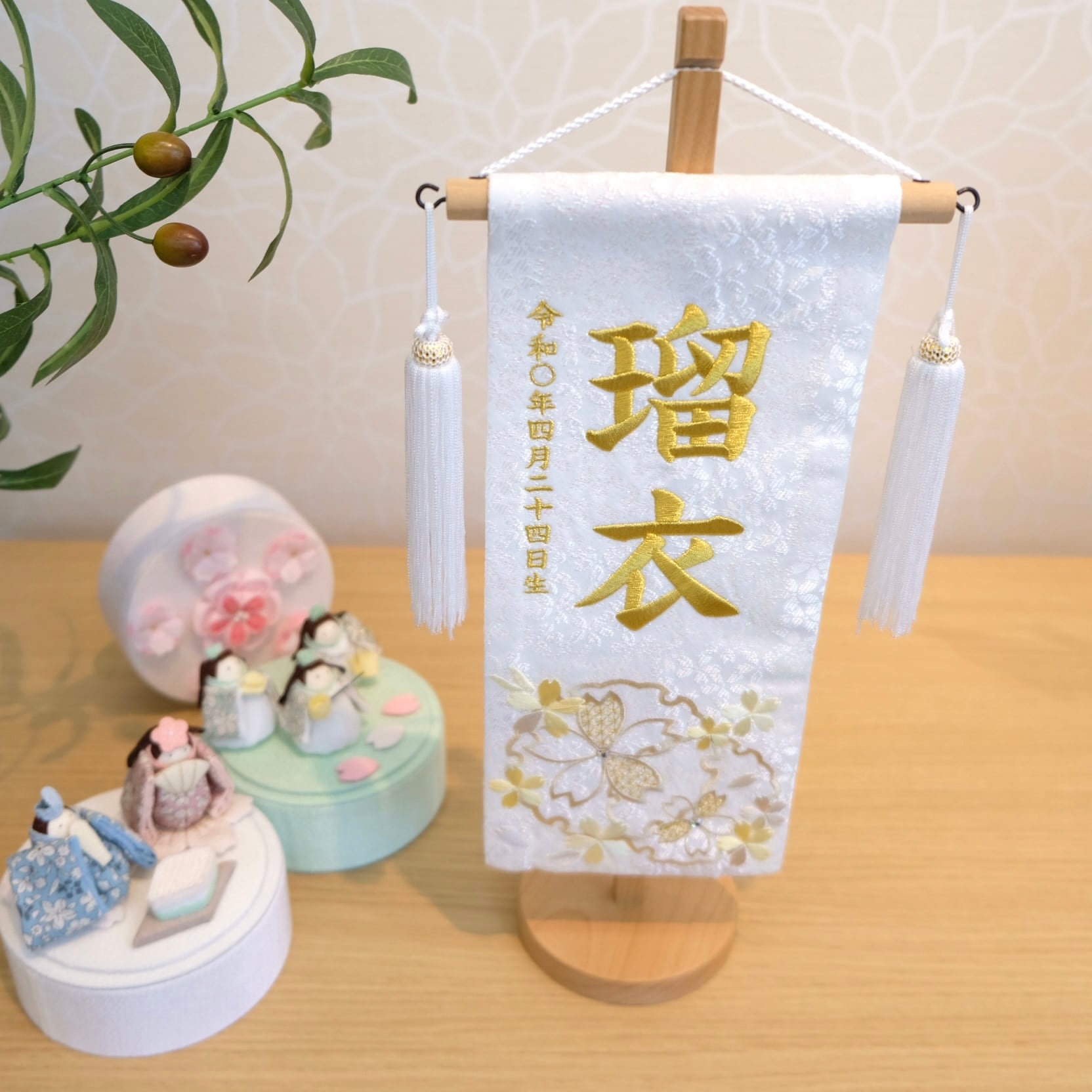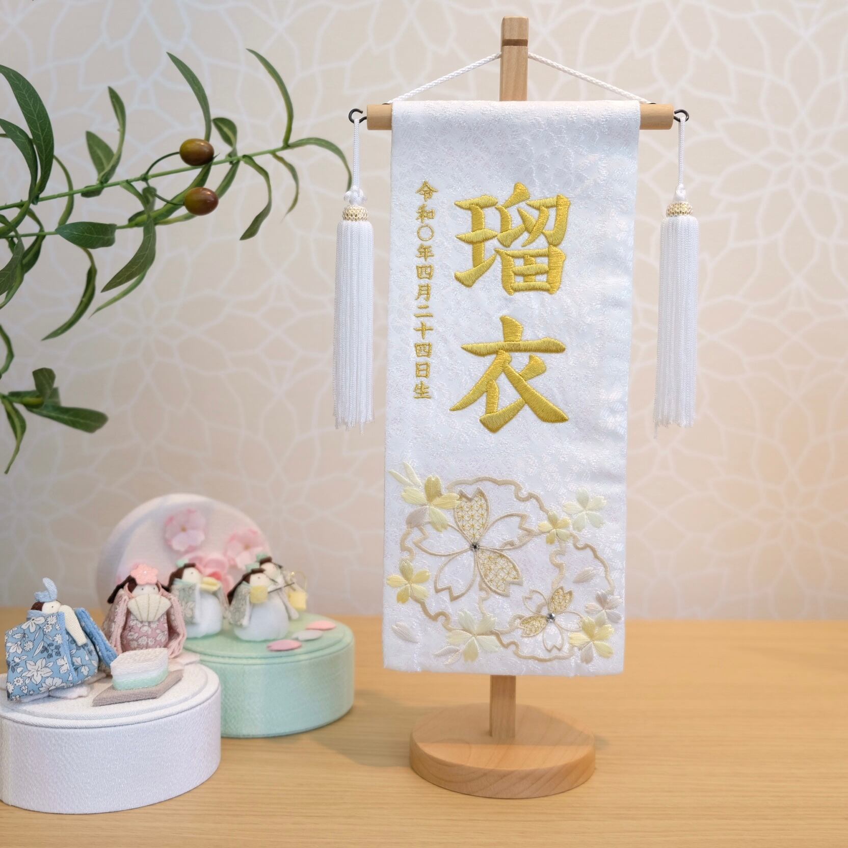 名前旗|徳織 雪輪に大桜(白)小 高さ38cm|雛人形 桃の節句|女の子|かわいい|おしゃれ|出産祝い|<No.TU07-202939>