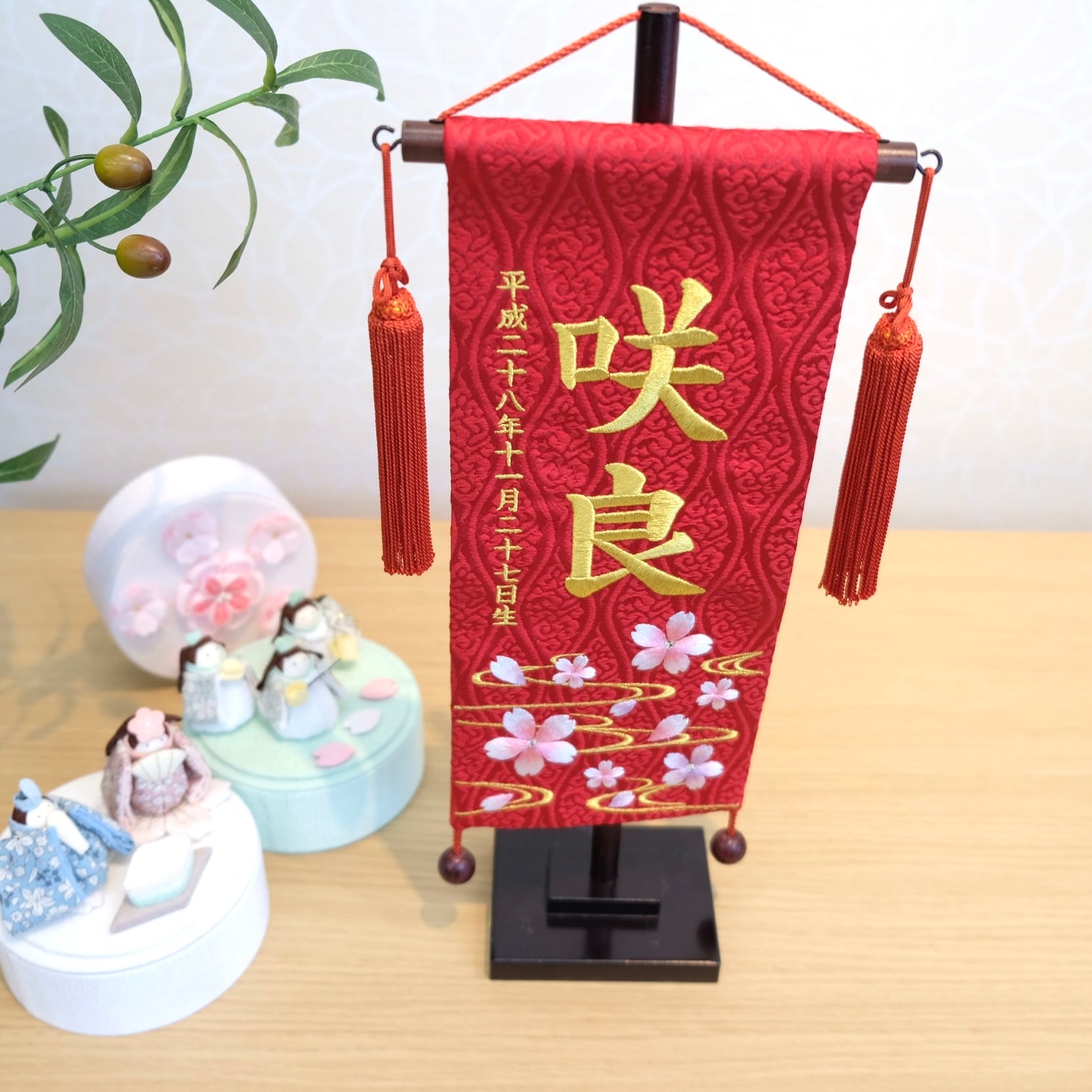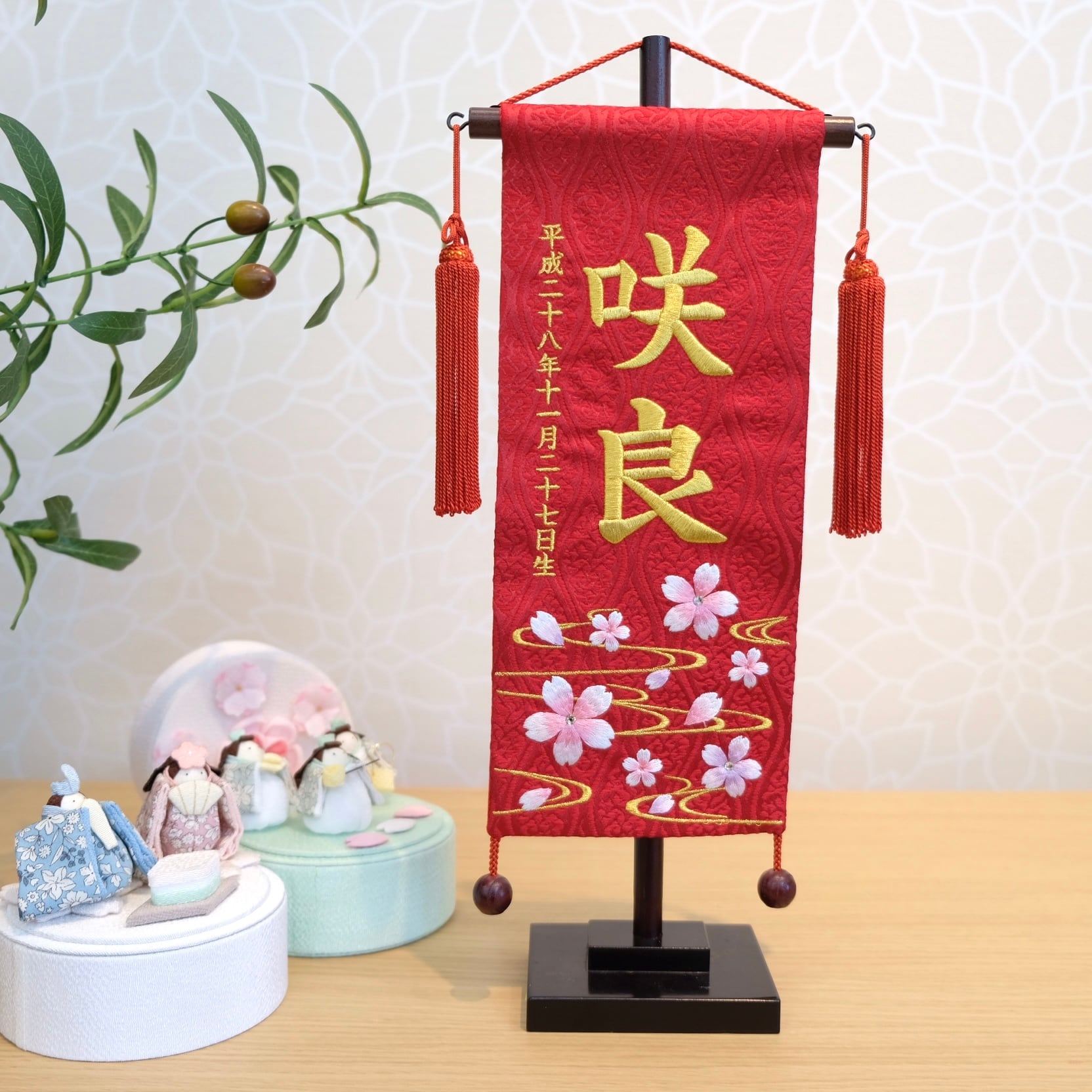 名前旗 | 名物裂 ぼかし桜(赤)小 高さ38cm | 雛人形 桃の節句 女の子 かわいい おしゃれ 出産祝い | <No.TU07-166743>