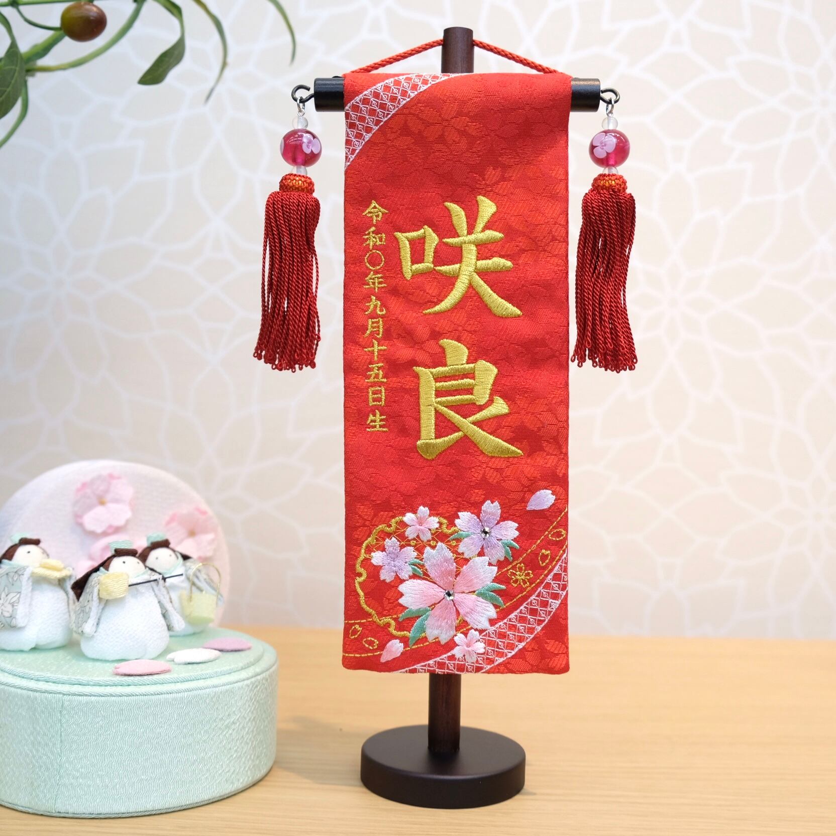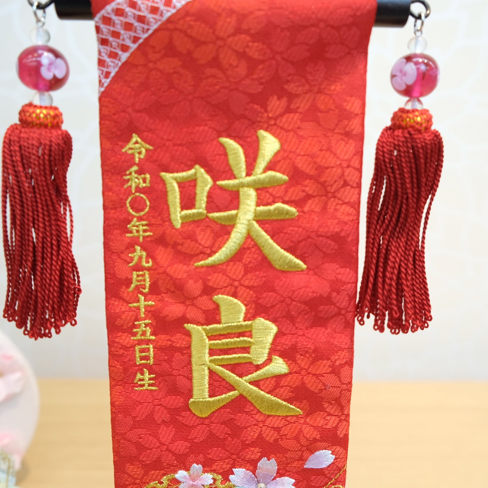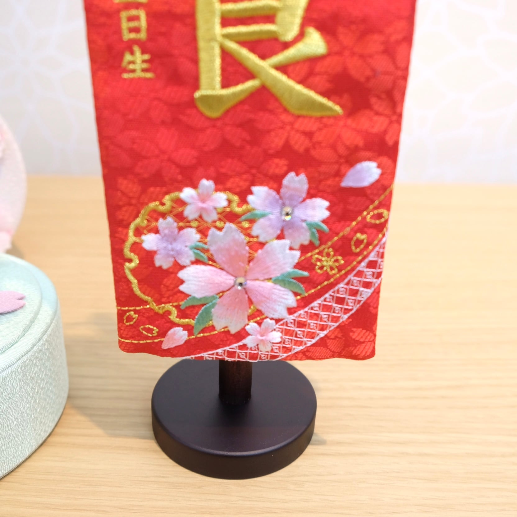 名前旗 特小| 徳織 たすき桜(赤) 高さ30cm | 雛人形 桃の節句 女の子 かわいい おしゃれ 出産祝い | <No.TU07-196375>