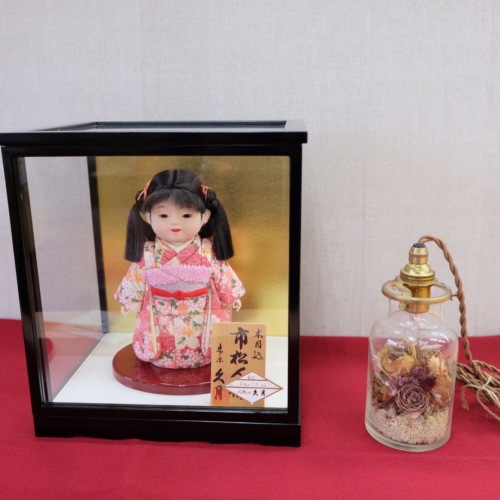 ※ケース付のお値段です。(接着はされていないため市松人形は取り外し可能です。)