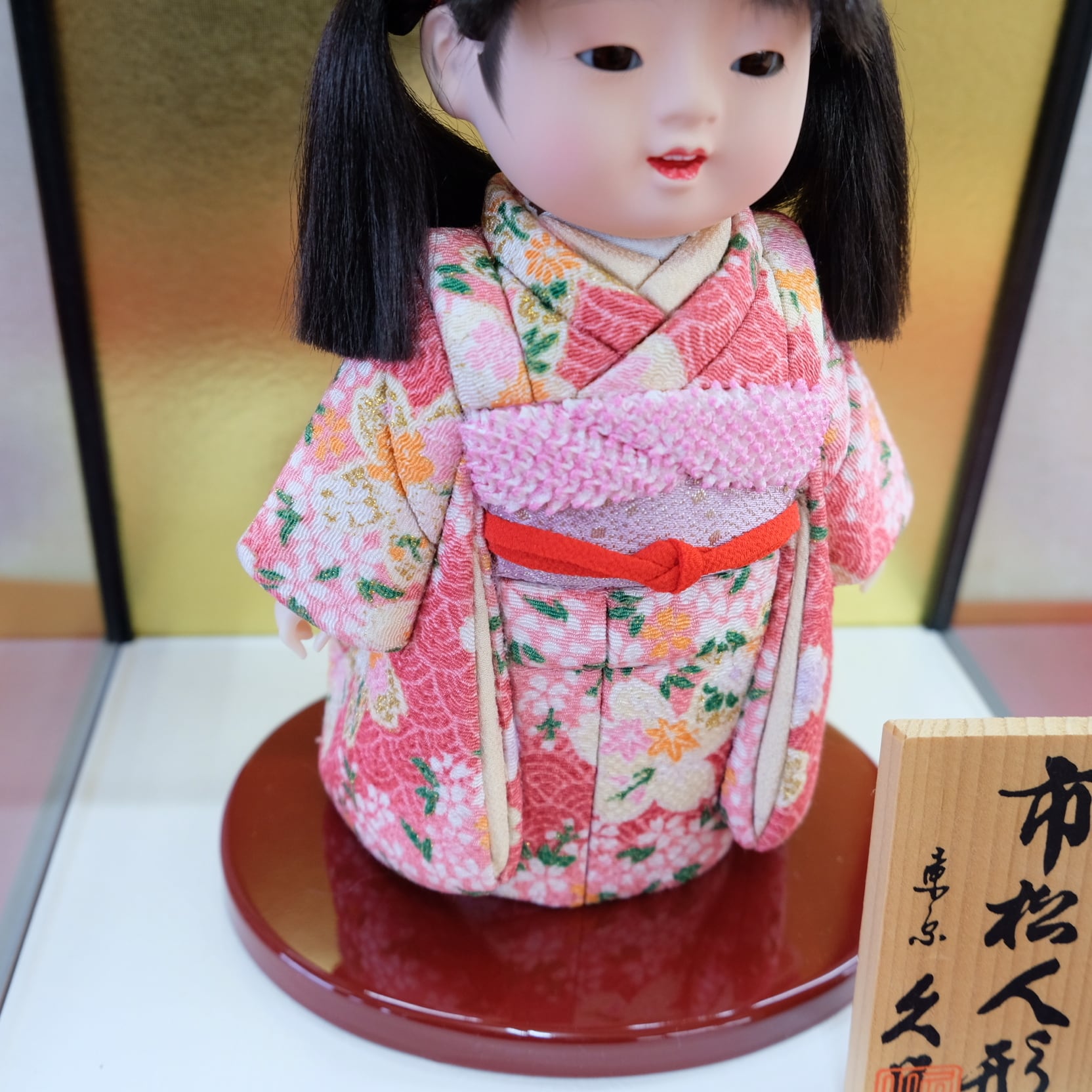 《久月 木目込市松人形 ピンク ケース付》