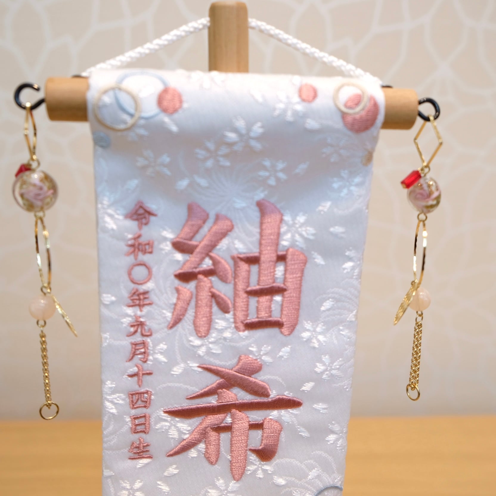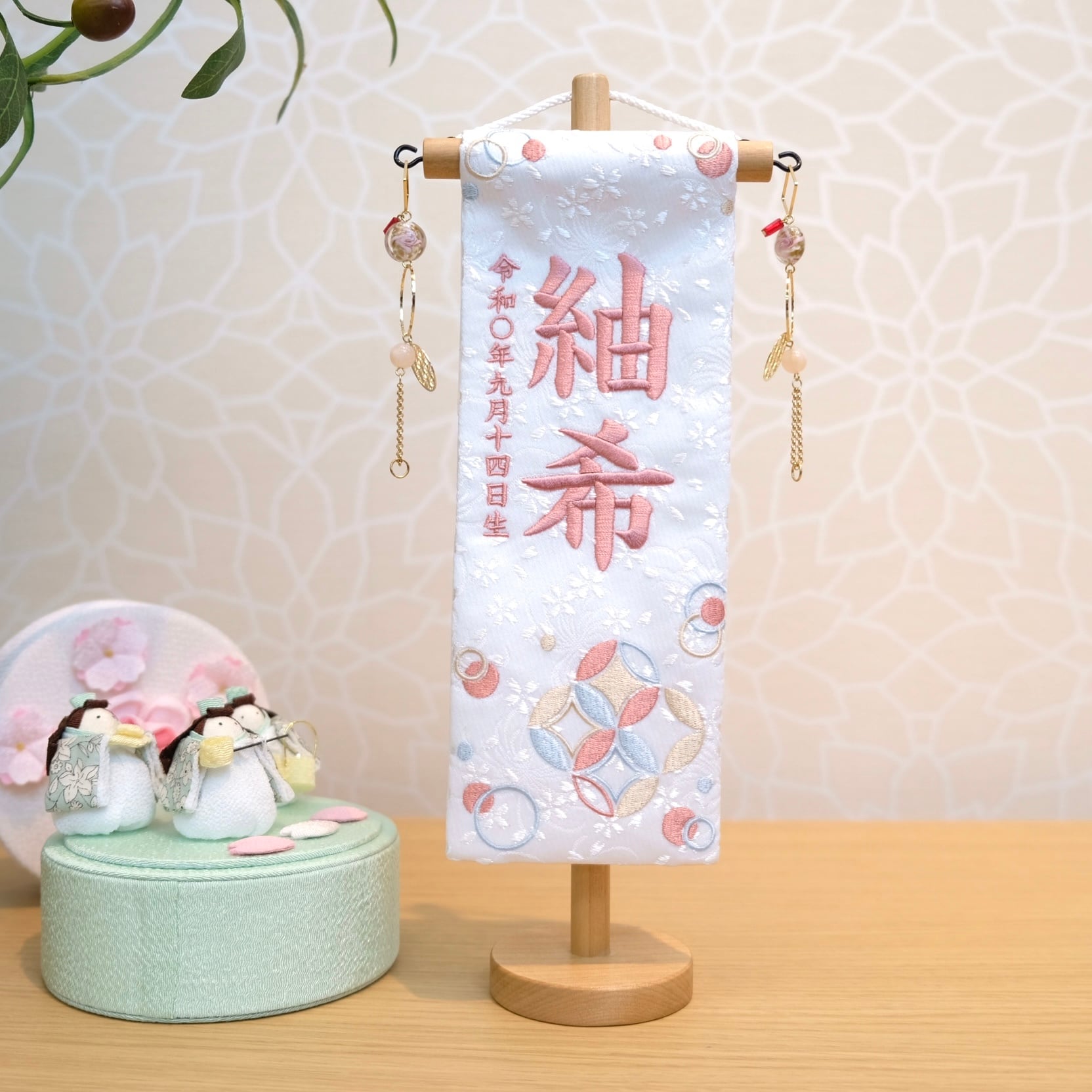 名前旗 特小 高さ30cm| 徳織 七宝 | 雛人形 桃の節句 女の子 かわいい おしゃれ 出産祝い | <No.TU07-660630>