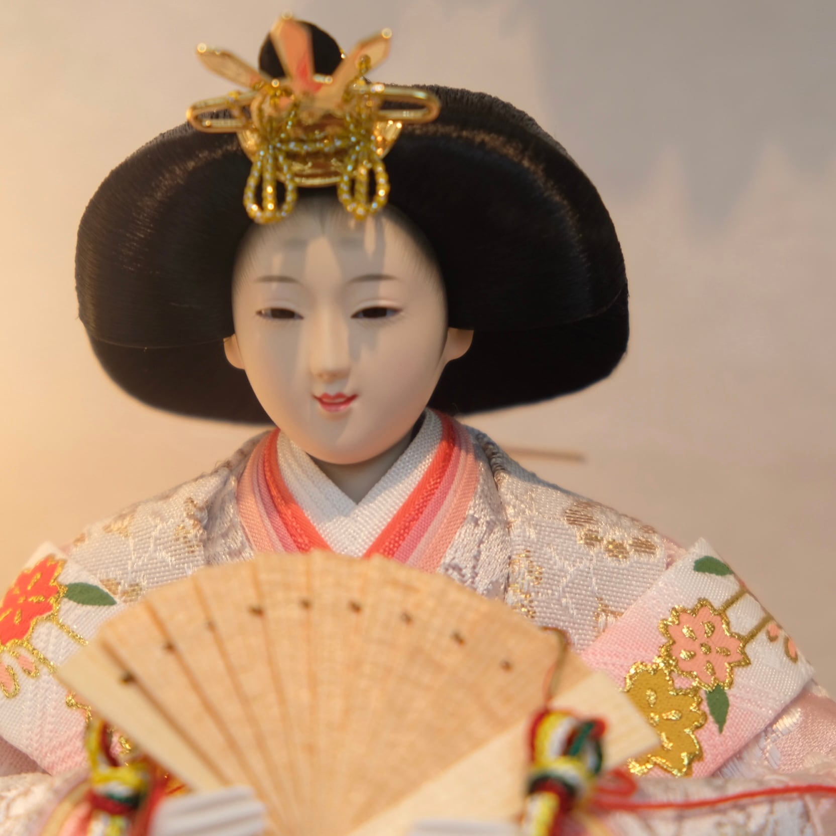 優美に微笑む可愛らしいお人形が上品なアクリルケースに映える、フローリングのお部屋にも違和感無くマッチするお飾りです。
