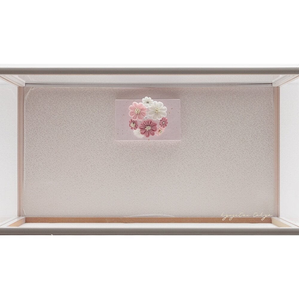 ケース背景にあしらった可愛らしい洋花の装飾が、優美に微笑む上品なお人形を見事に引き立てます。