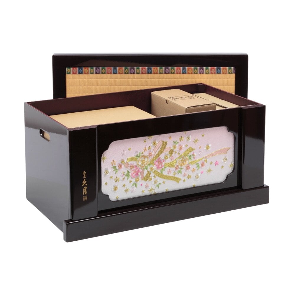 上品で落ち着いた色合いの飾り台は、便利な収納ボックスを兼ねており、省スペースに仕舞える点も魅力です。