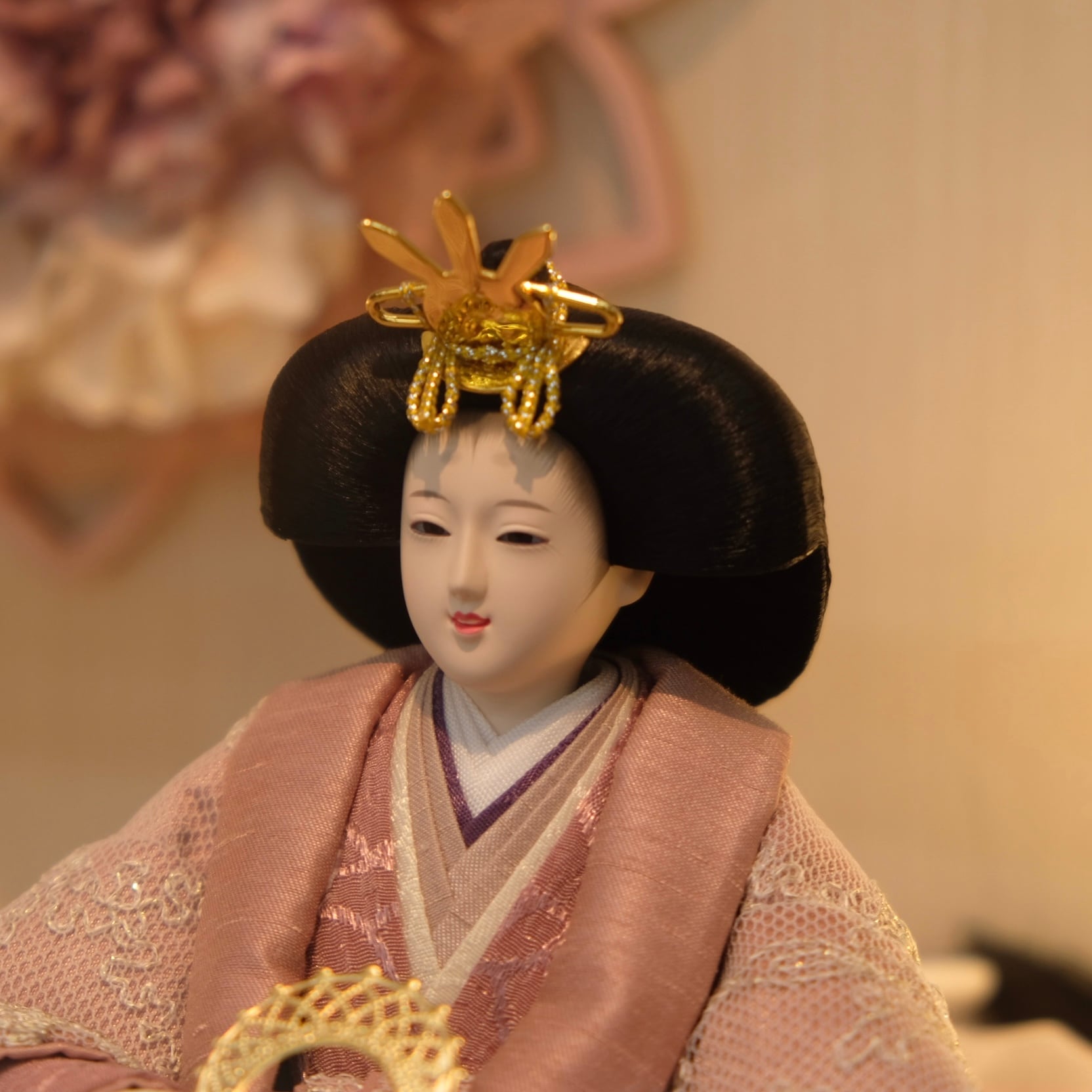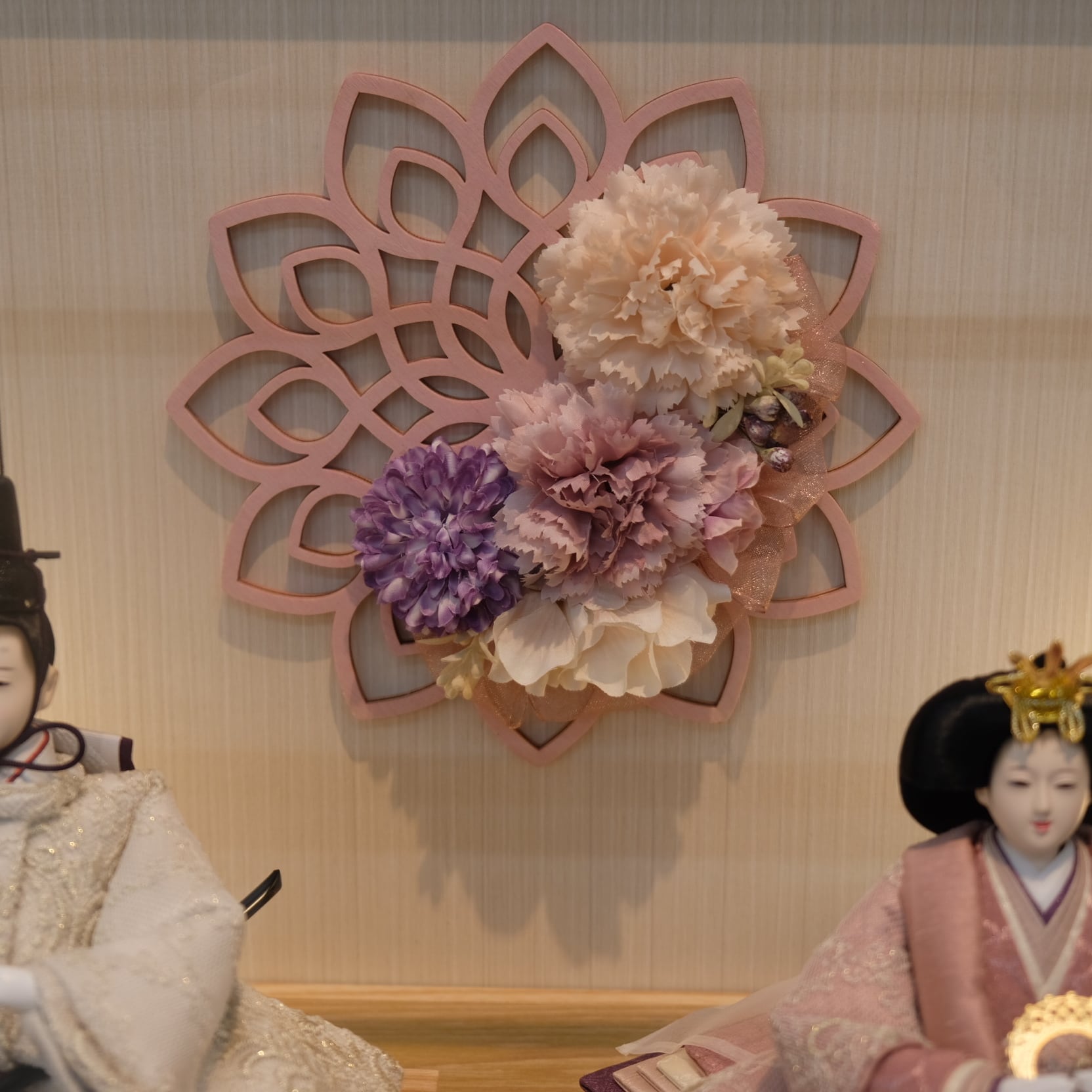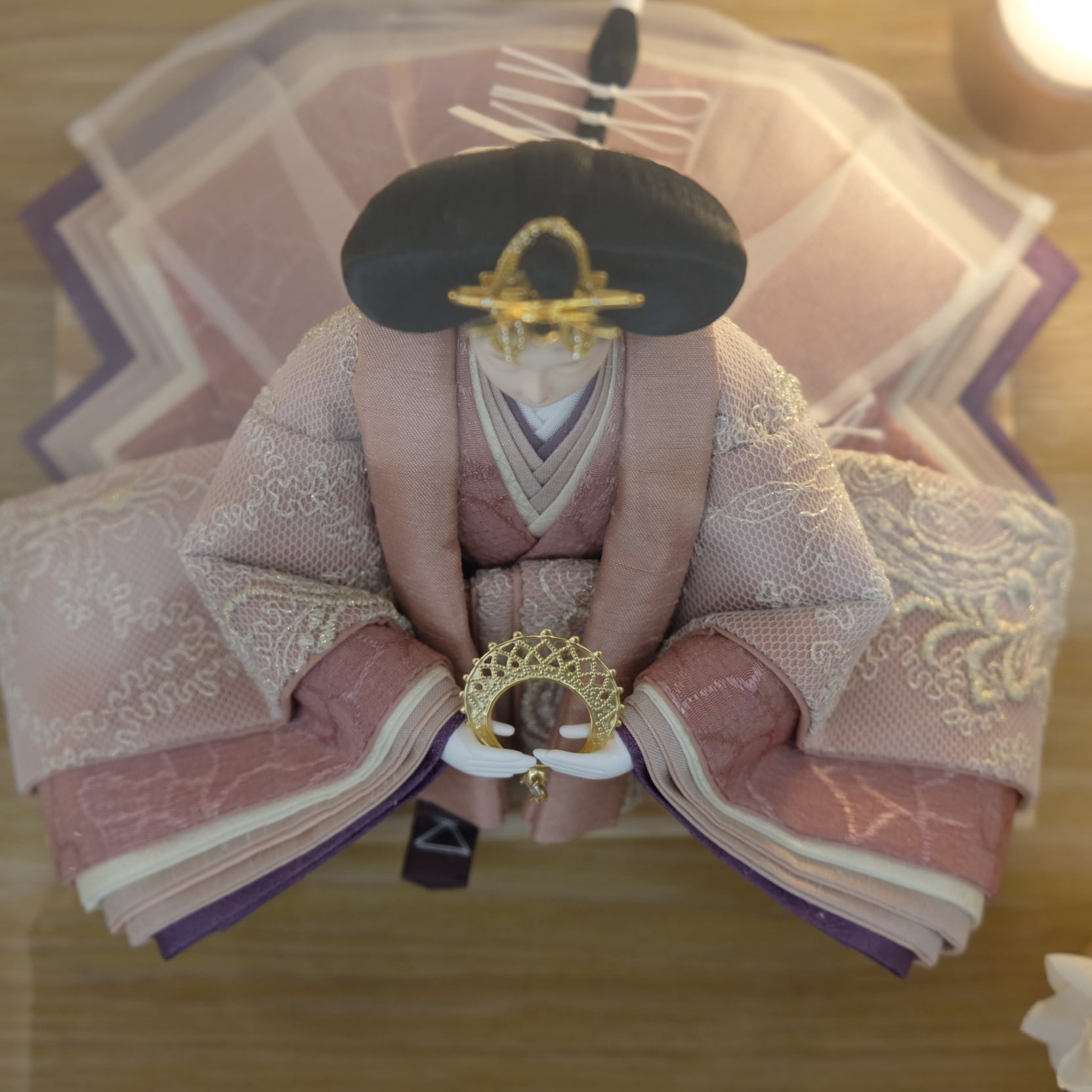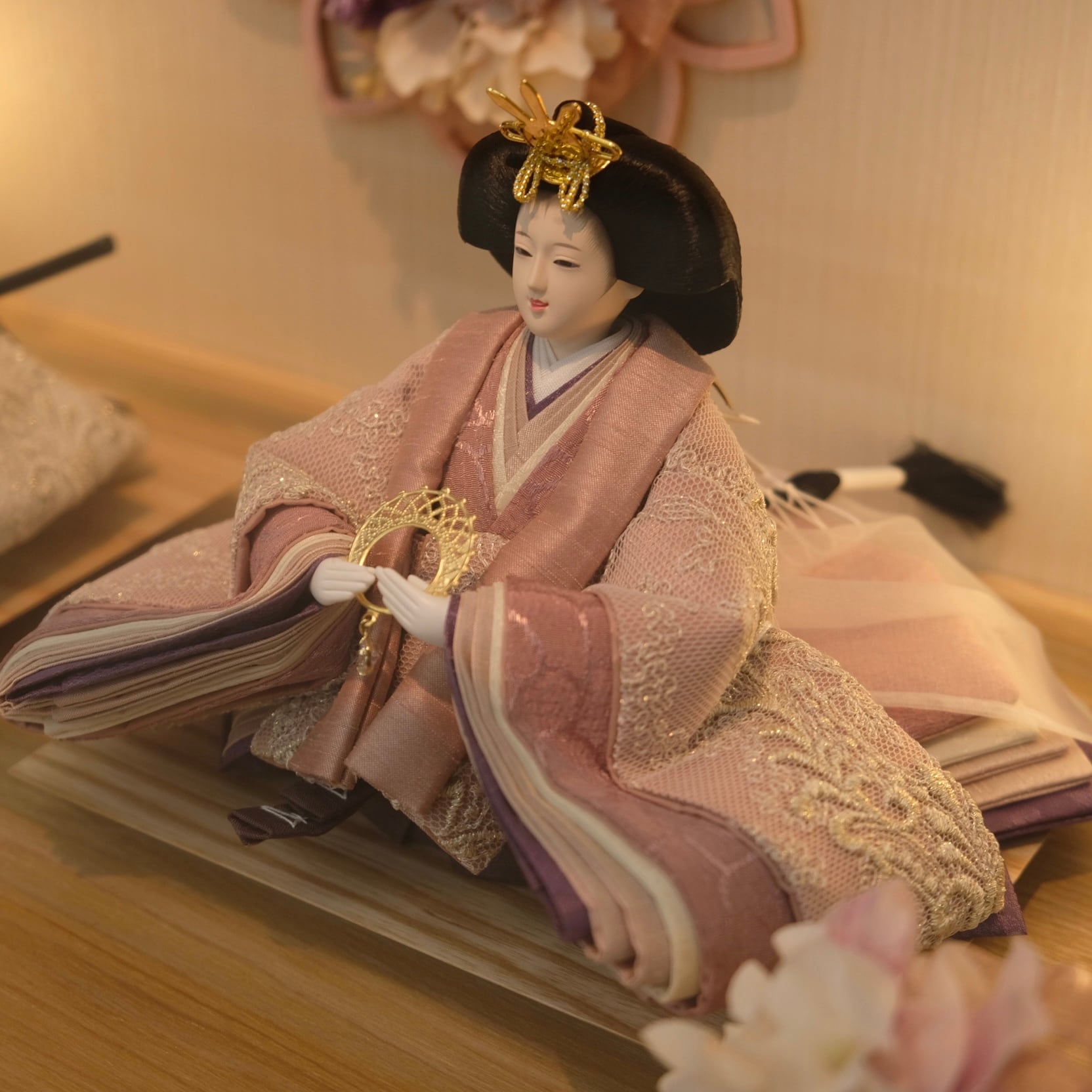 優美に微笑む可愛らしいお人形が上品なアクリルケースに映える、フローリングのお部屋にも違和感無くマッチするお飾りです。